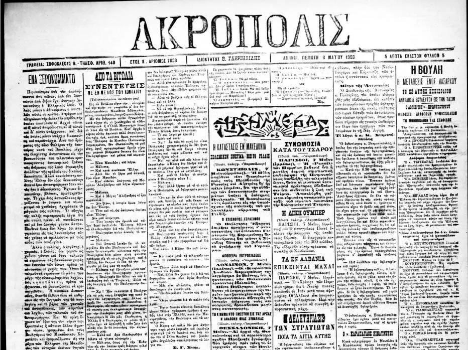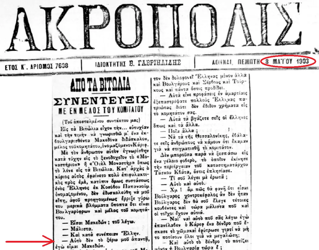Интервју со претседателот на Крушевската Република за грчкиот весник „Акрополис“ од 8 мај 1903 година.
