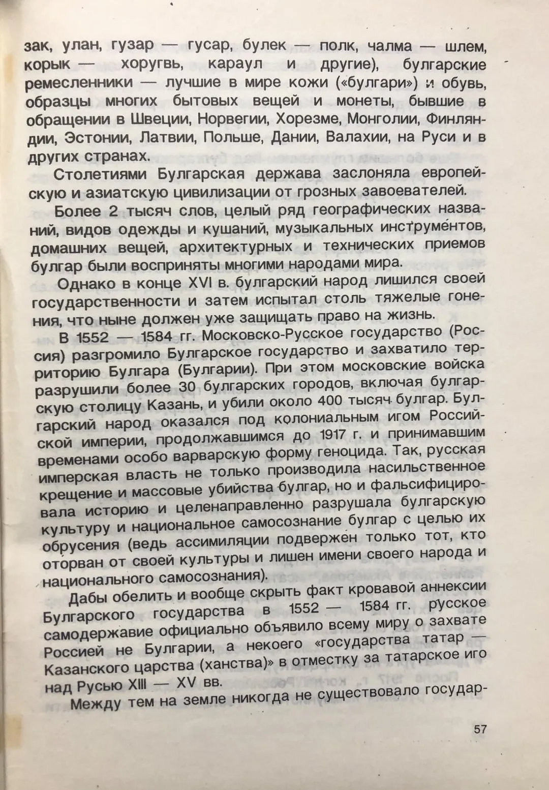 Луѓето од денешен Татарстан и Чувашија зборуваат на јазици од туркиската група јазици и за себе велат дека се Бугари. Ние Македонците имаме почит за овие луѓе, ама немаме ништо заедничко со нив.